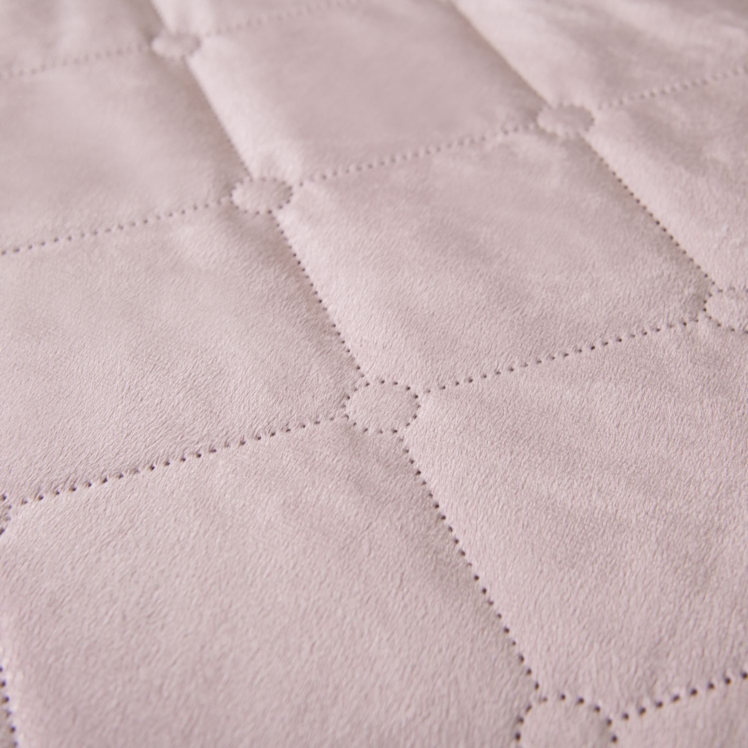 Ромбовидный узор на покрывале выполнен с использованием термостежки, что придаёт изделию особую изысканность и подчёркивает элегантность интерьера.