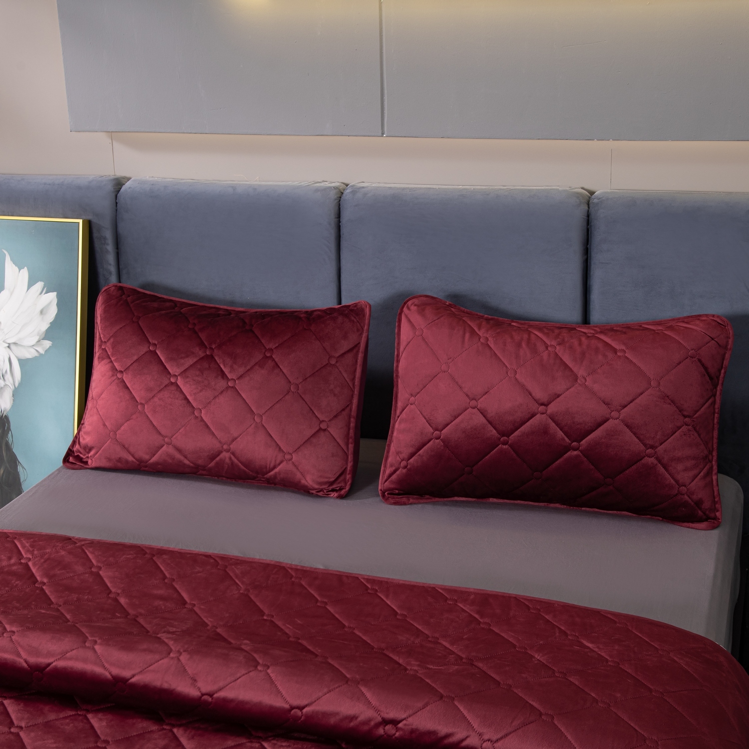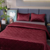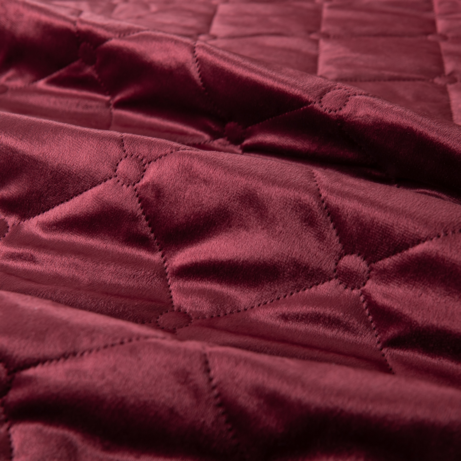 Ромбовидный узор на покрывале выполнен с использованием термостежки, что придаёт изделию особую изысканность и подчёркивает элегантность интерьера.