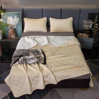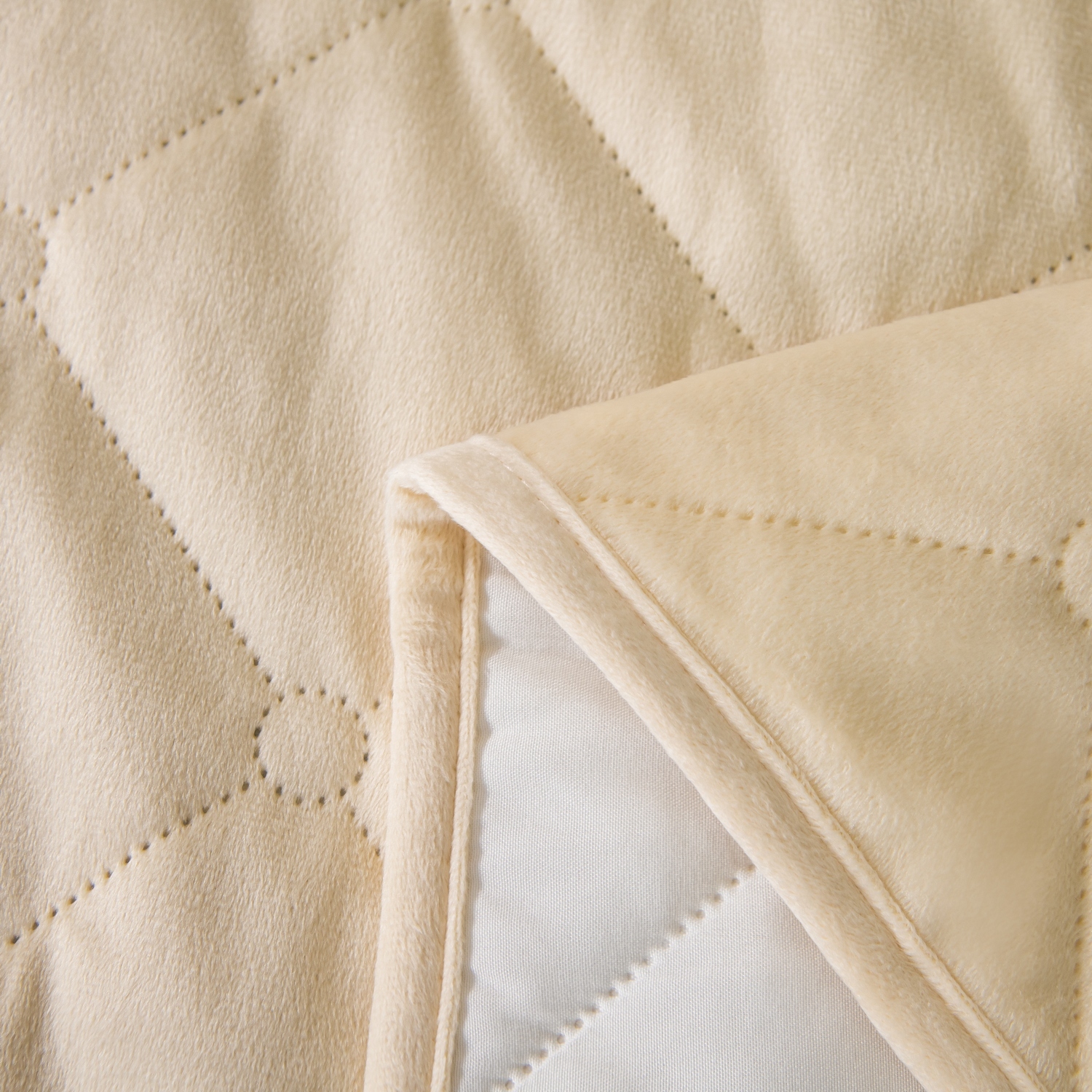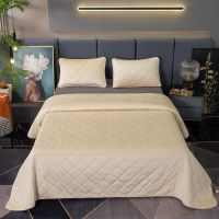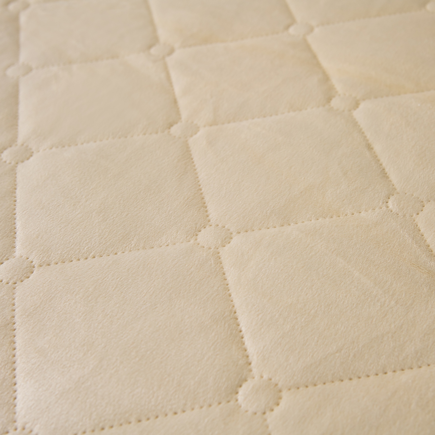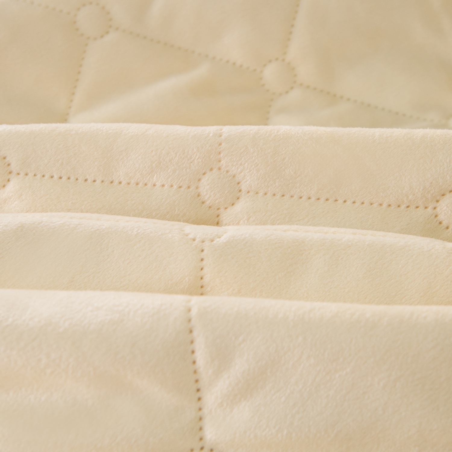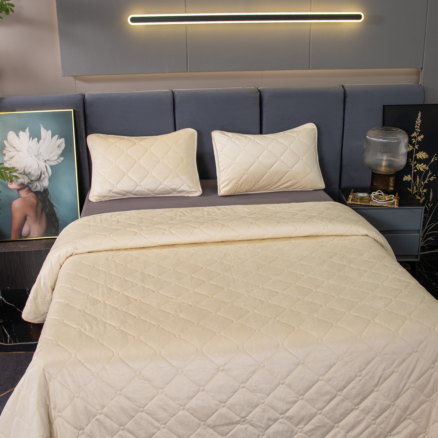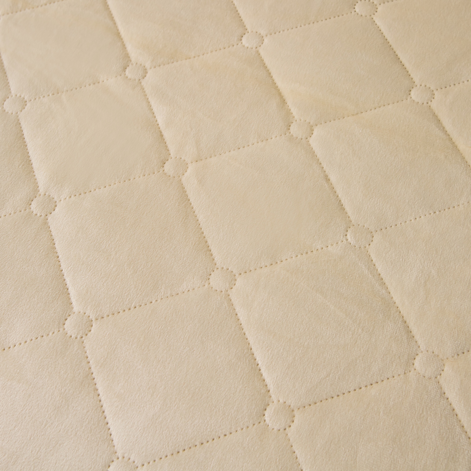 Ромбовидный узор на покрывале выполнен с использованием термостежки, что придаёт изделию особую изысканность и подчёркивает элегантность интерьера.