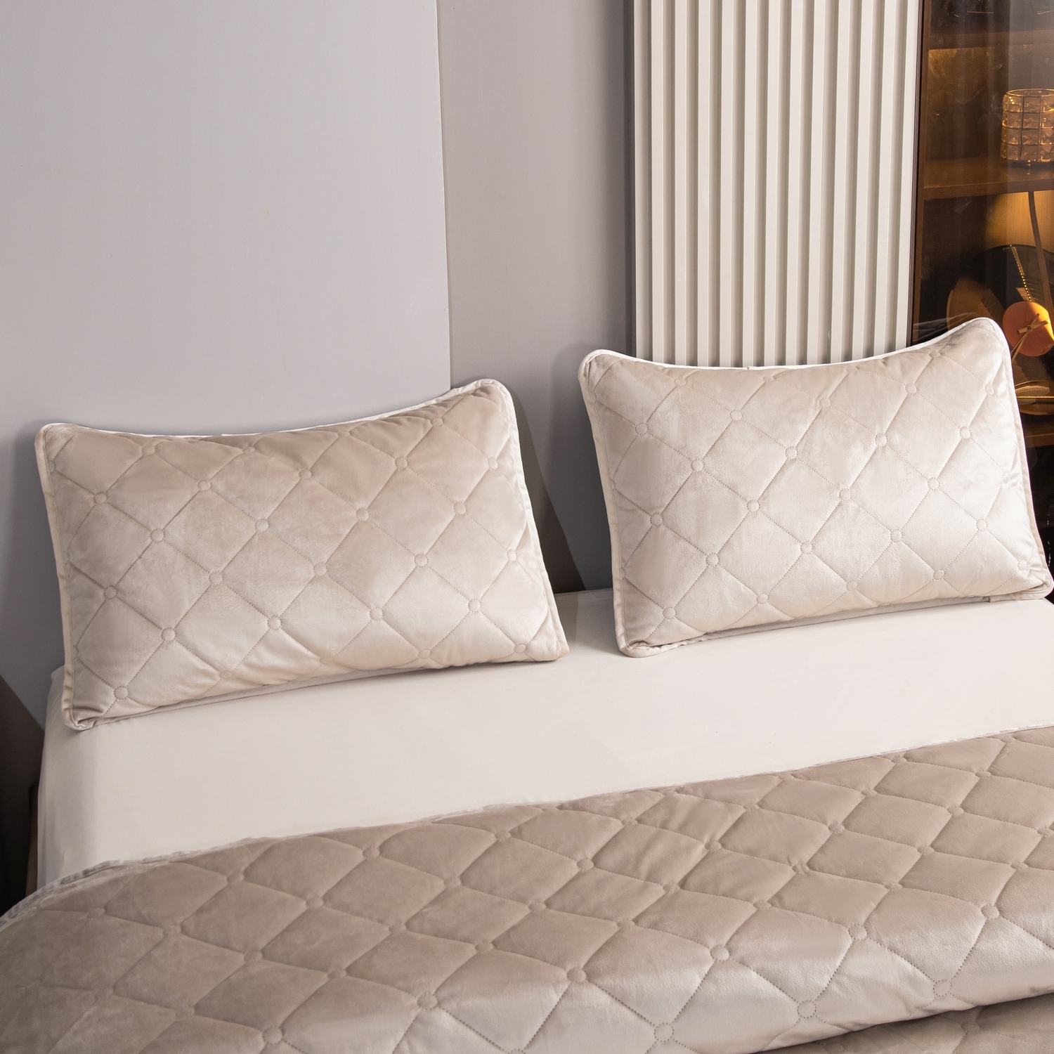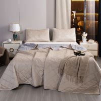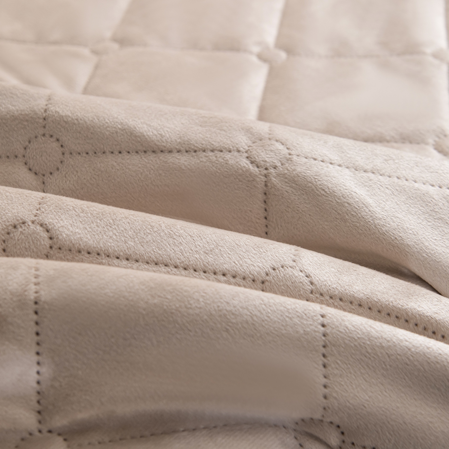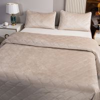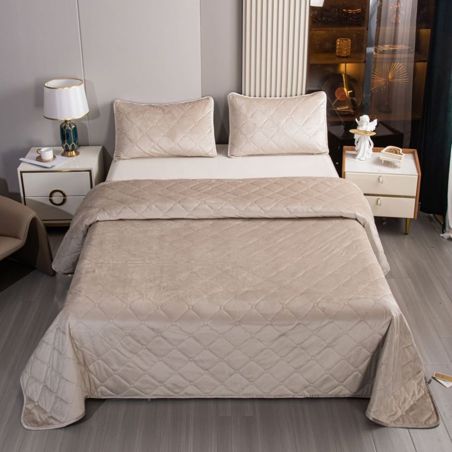Ромбовидный узор на покрывале выполнен с использованием термостежки, что придаёт изделию особую изысканность и подчёркивает элегантность интерьера.