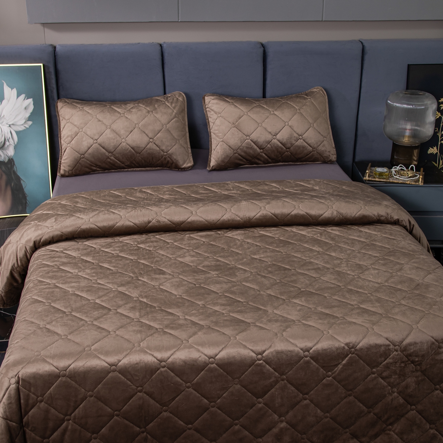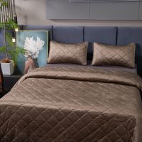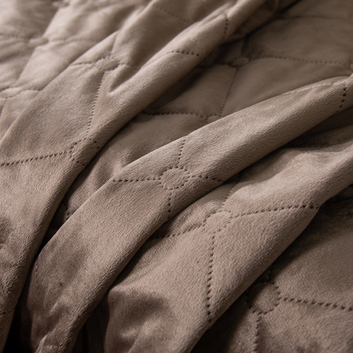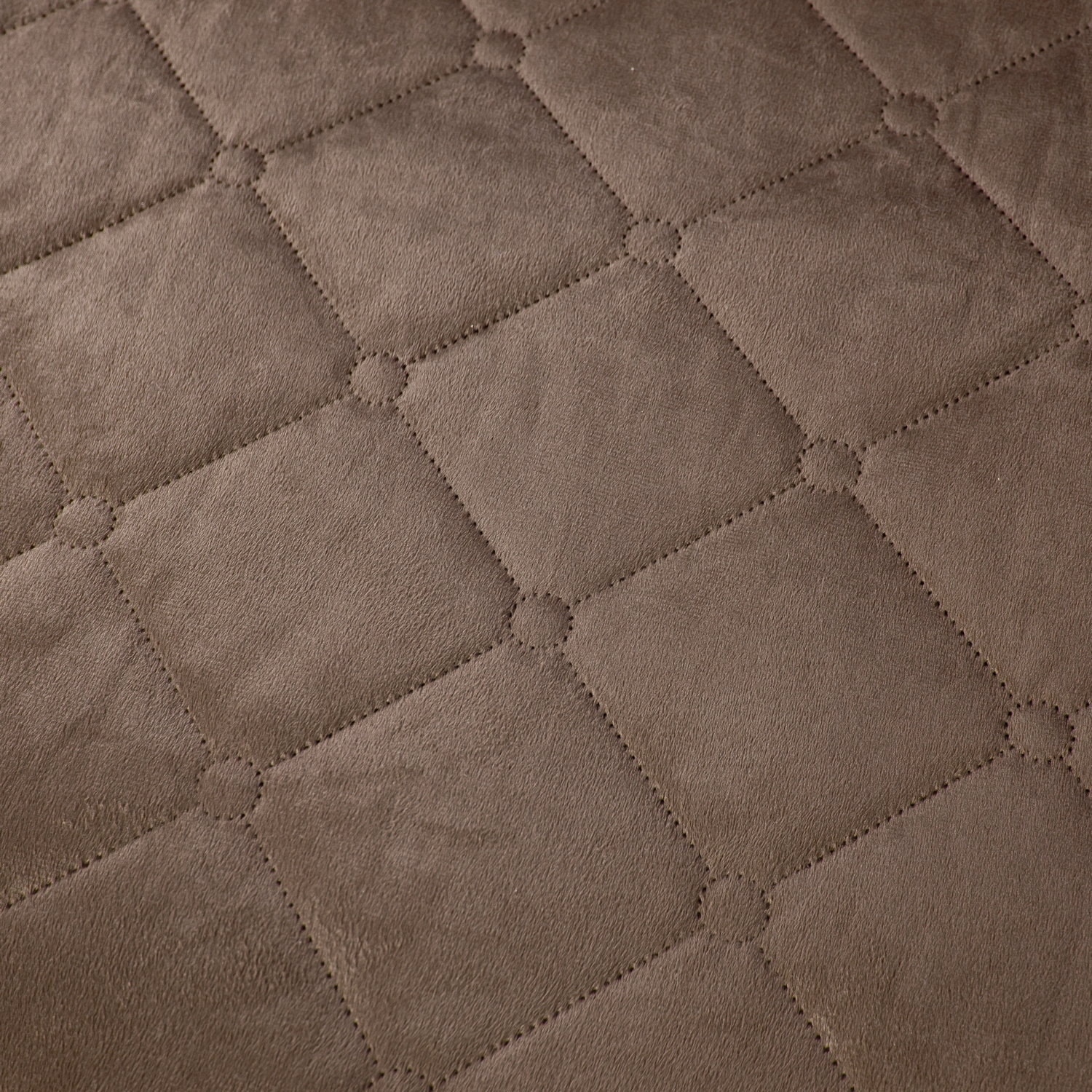 Ромбовидный узор на покрывале выполнен с использованием термостежки, что придаёт изделию особую изысканность и подчёркивает элегантность интерьера.