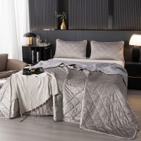 Ромбовидный узор на покрывале выполнен с использованием термостежки, что придаёт изделию особую изысканность и подчёркивает элегантность интерьера.