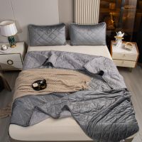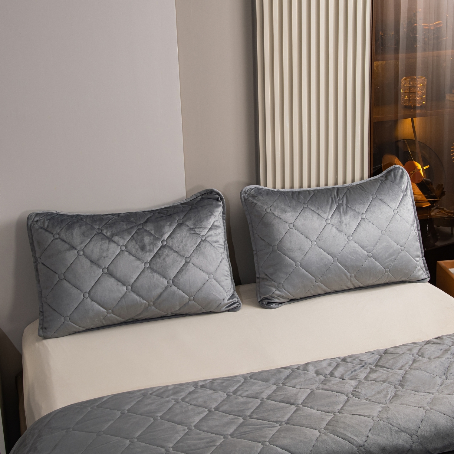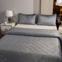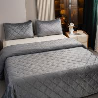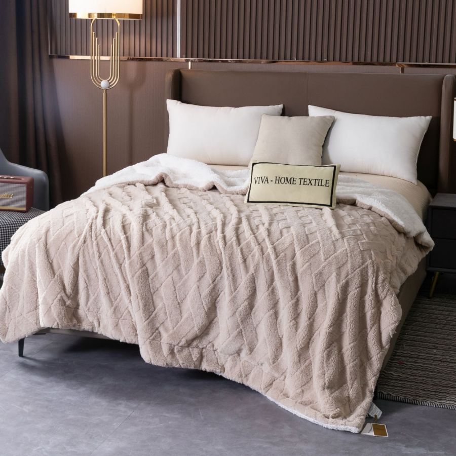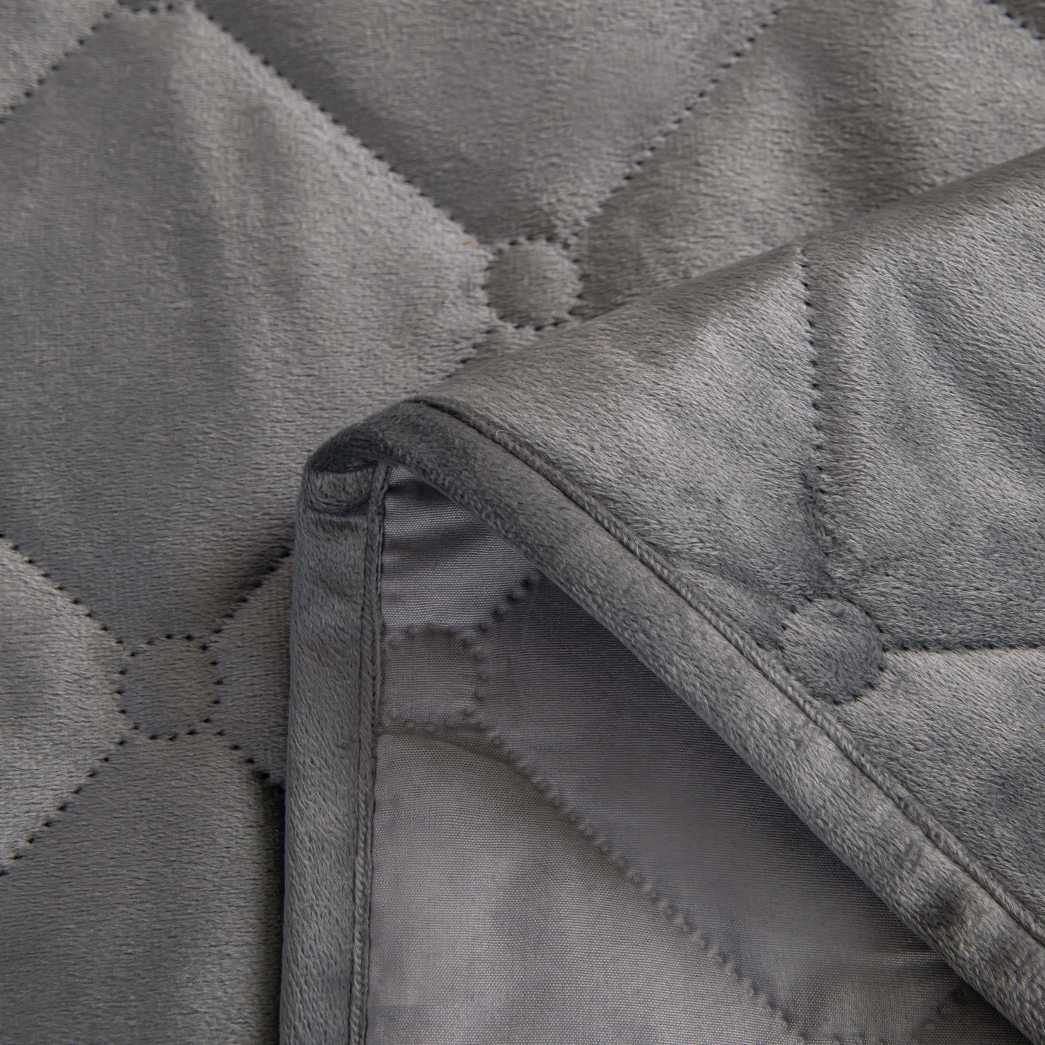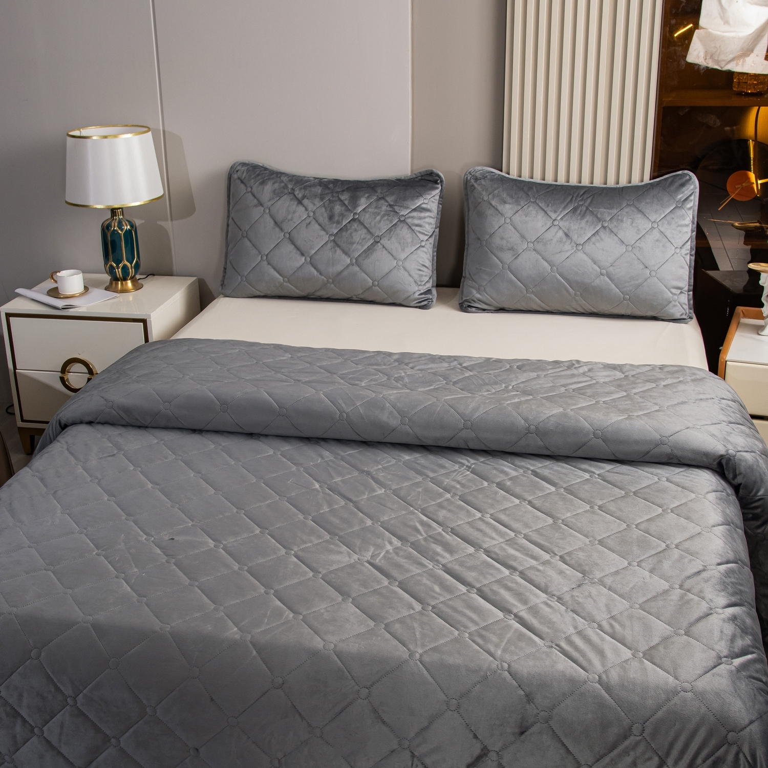 Ромбовидный узор на покрывале выполнен с использованием термостежки, что придаёт изделию особую изысканность и подчёркивает элегантность интерьера.