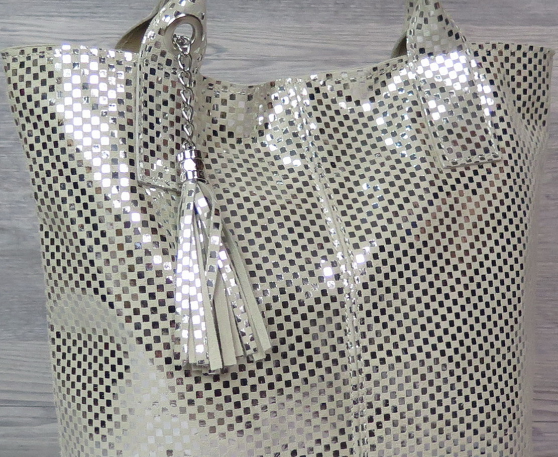 Внутри  одно отделение, "косметичка", есть подклад, кармашек для мелочей на молнии.